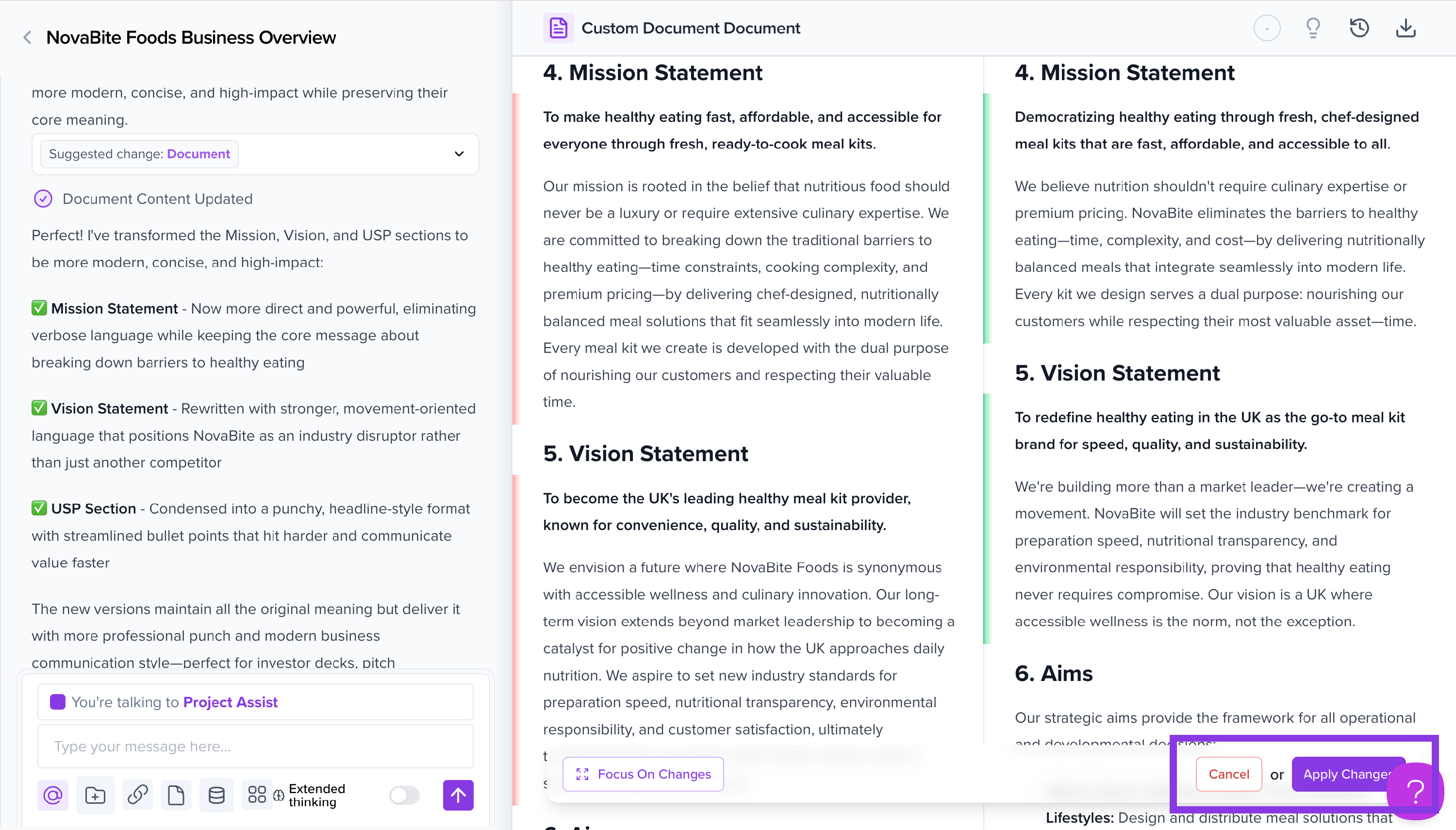 Whenever you ask Assist to make a change, it'll ask if you want to Apply Changes (or Cancel without changing anything).