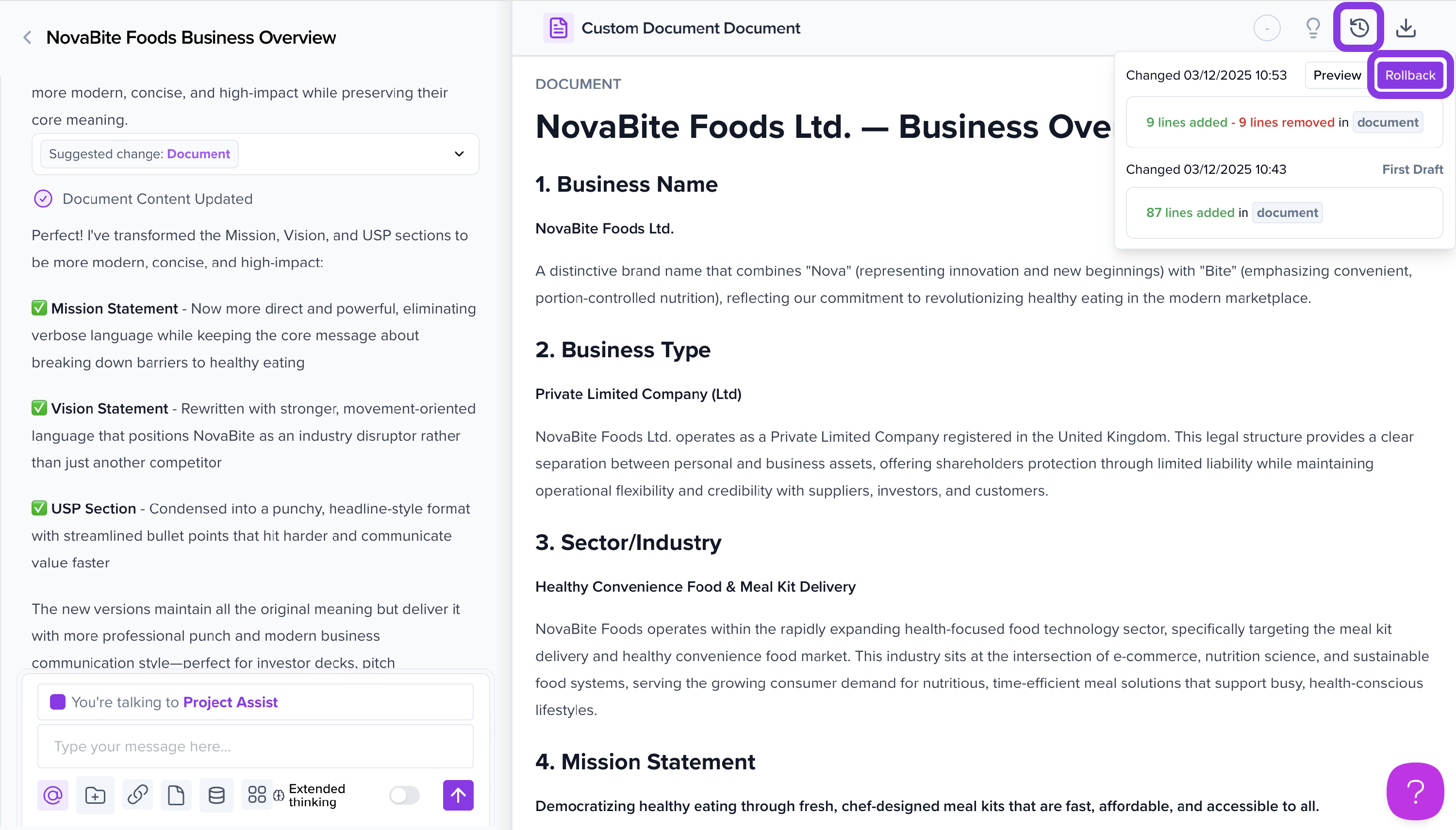 Assist has a simple but comprehensive system for making and rolling back changes.